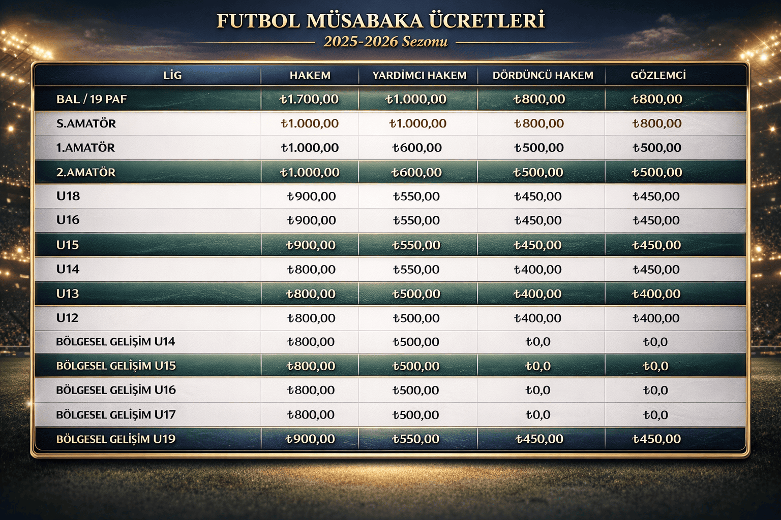 Amatör hakem, gözlemci, görevli ücretlerinin aşağıdaki şekilde düzenlenmesine karar verilmiştir.